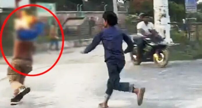 এ সময় শরীরে আগুন নিয়ে ছুটতে থাকেন শহিদুল ইসলাম নামের ওই ব্যক্তি। পরে অন্য নেতাকর্মীরা তার গায়ে থাকা জার্সি খুলে আগুন নেভান।
